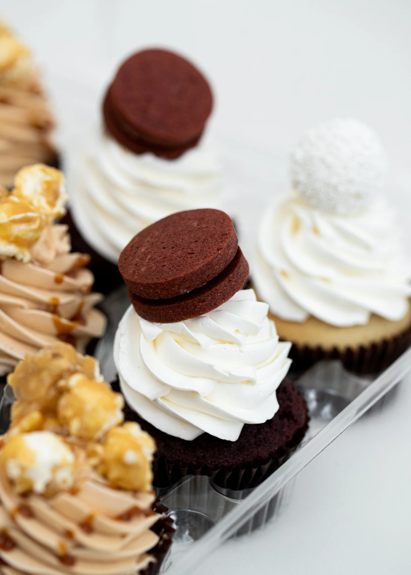 Indulge in our classic dozen mixed cupcakes, featuring the delightful flavors of southern red velvet, vanilla, and chocolate salted caramel. Ideal as a thoughtful gift to a friend, our cupcakes are a sweet treat for every occasion. Enhance your order with a beautiful floral arrangement or other accessories for an extra special touch.