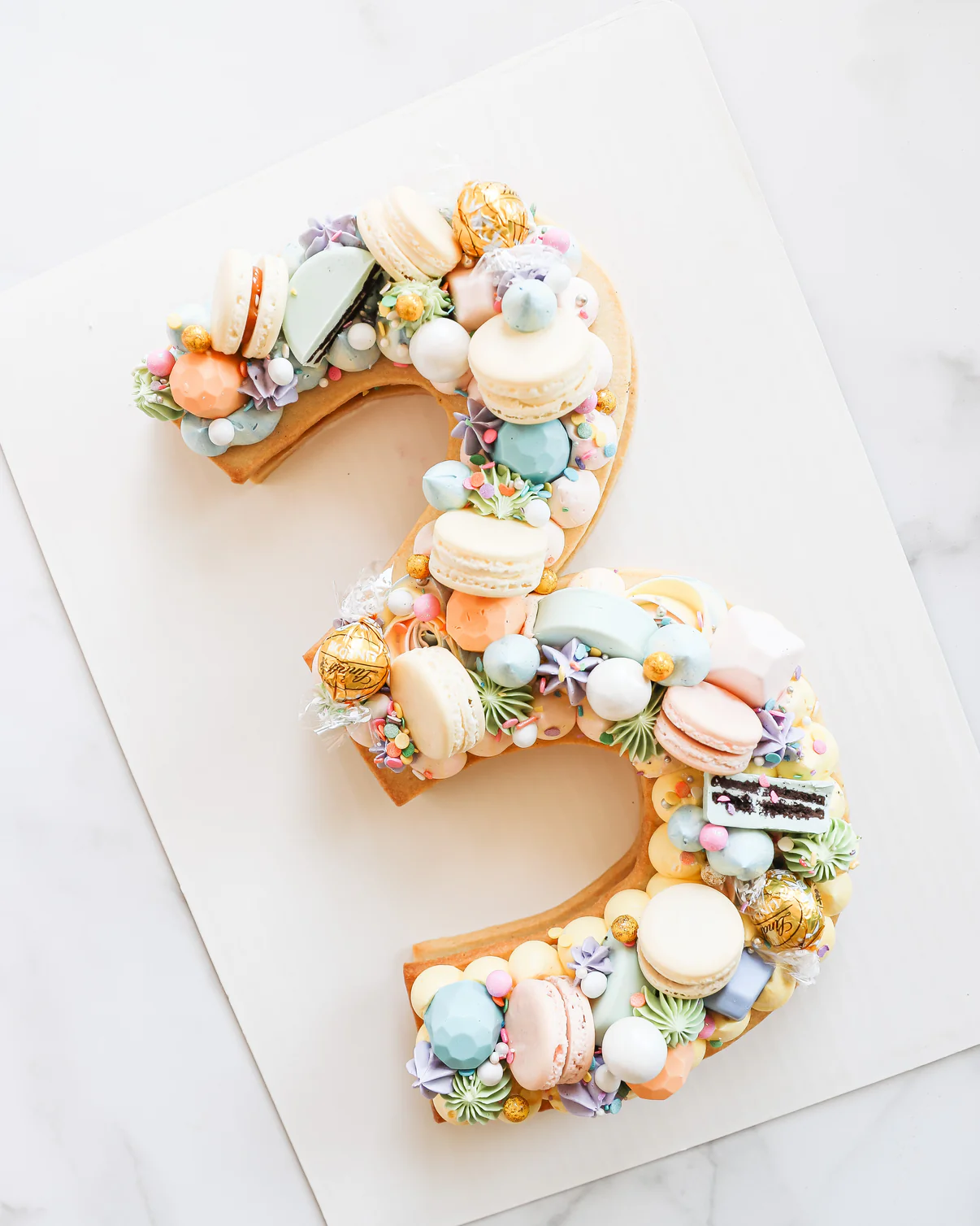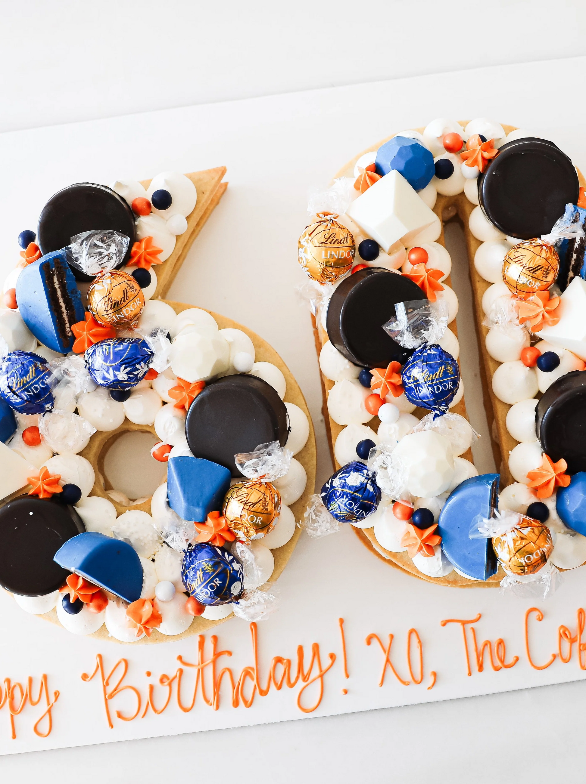 Celebrate with our trendy vanilla bean cookie cake, featuring two numbers in a box. Available in small, medium, and large sizes, you can choose your preferred style, flavor, and toppings. Perfect for birthdays, anniversaries, or any special occasion, our customizable cookie cake adds a fun and personalized touch to your celebrations.