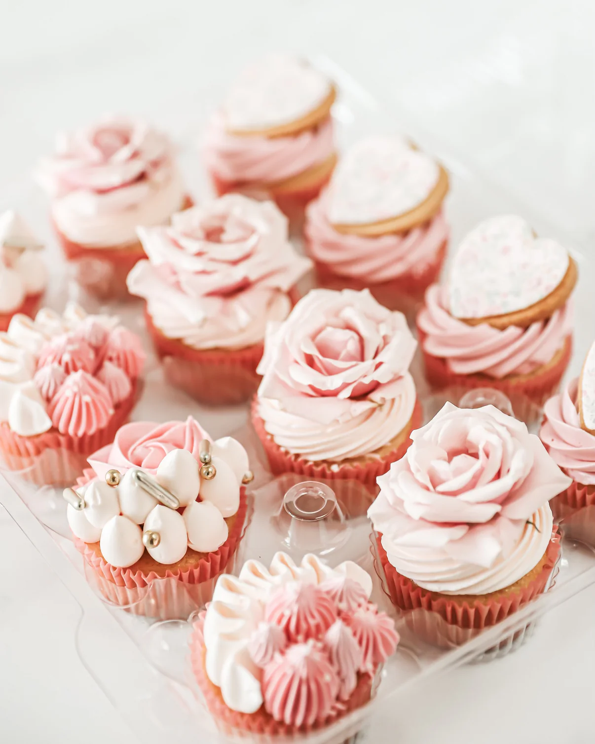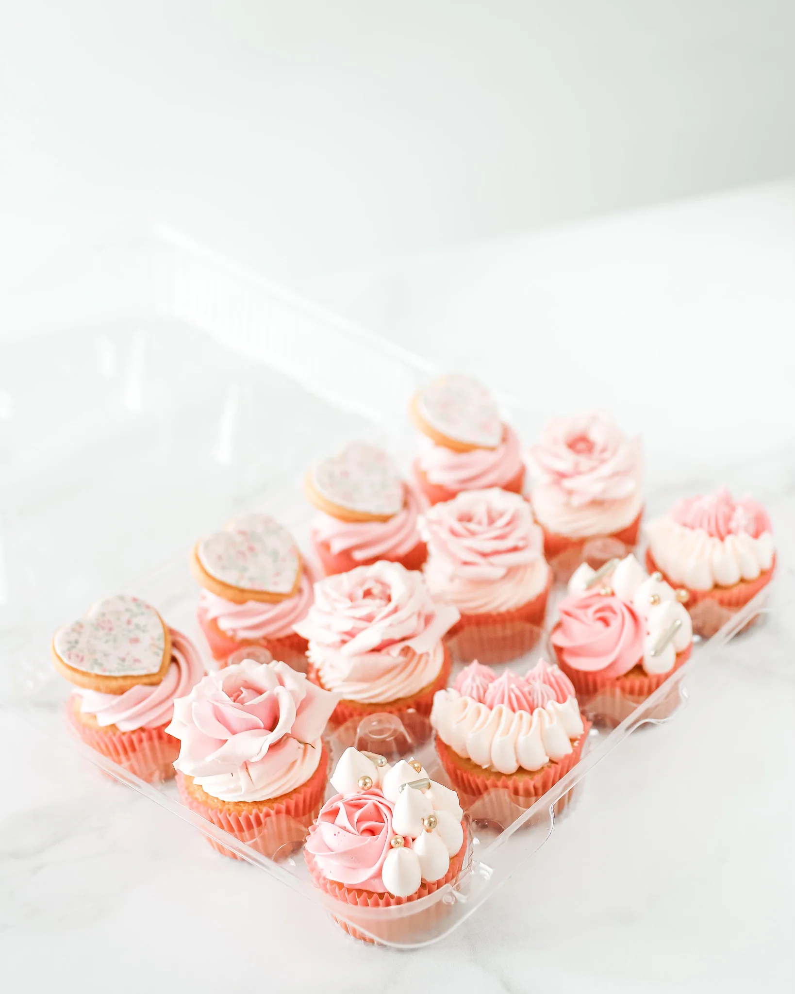 Enjoy one dozen classic Shabby Love Cupcakes adorned with blushing vanilla buttercream. Each cupcake is topped with food safe silk mini blooms, mini cookies, sprinkles, and meringues, making it the perfect treat for a loved one.