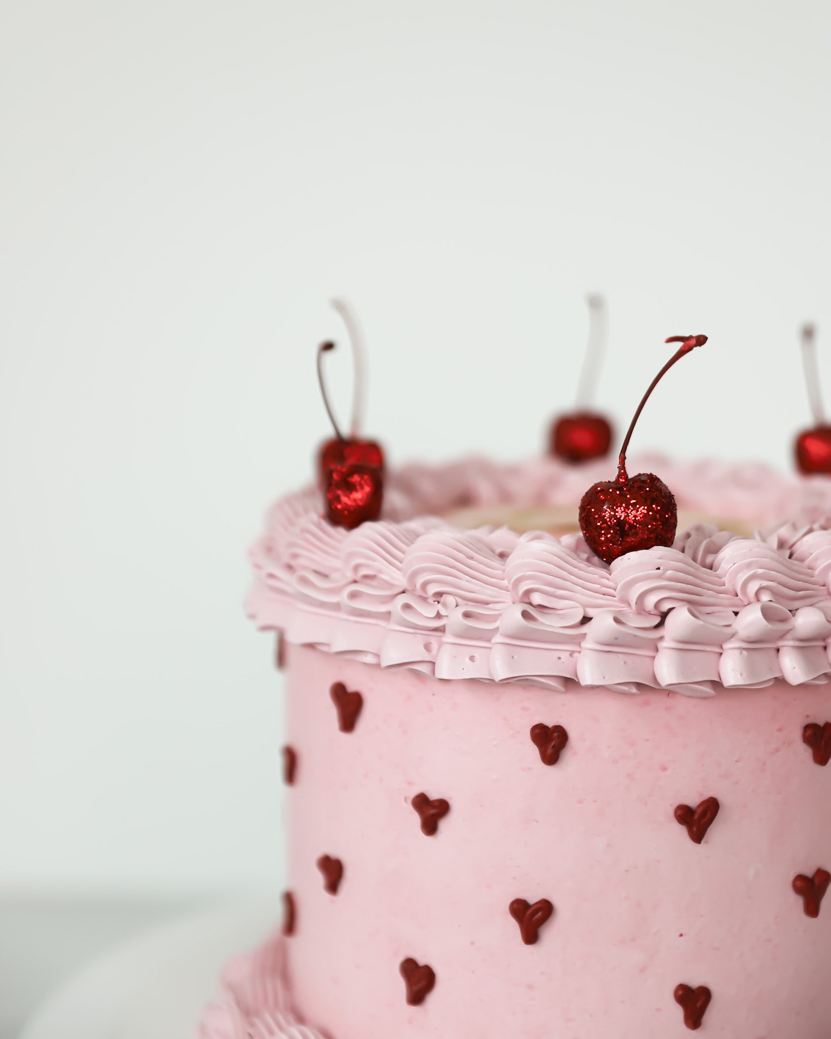 Our Velvet Valentine Heart Cake is a playful and romantic dessert made to celebrate Valentine’s Day in the sweetest way. Finished in soft pink buttercream with hand‑piped heart details and topped with festive cherries, this cake is as charming as it is delicious.